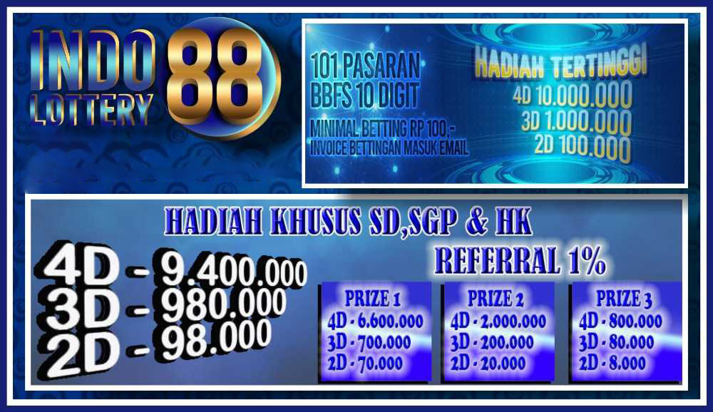 Indolottery88 benar-benar sangat terkenal dengan penawaran hadiah paling besar yang cukup berkompetitif dengan bandar togel yang lainnya. Disamping itu, Indolottery 88 selalu sediakan pasaran togel komplet yaitu sebanyak 101 pasaran, hingga anda akan mempunyai banyak pilihan permainan. Ada juga pasaran togel wla seperti pasaran togel singapura (sgp), dan begitu juga dengan pasaran lokal seperti hongkong, sydney, dan lain-lain.